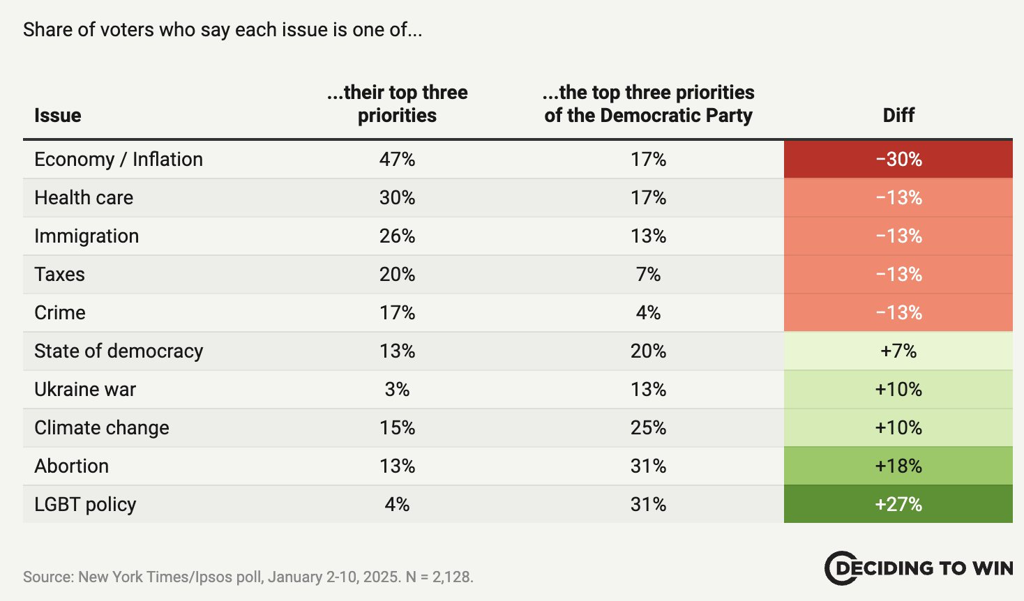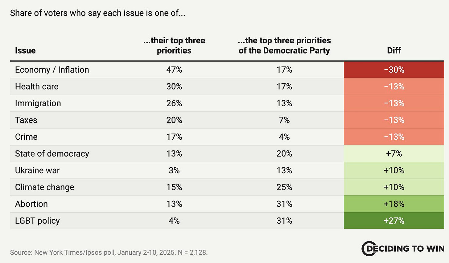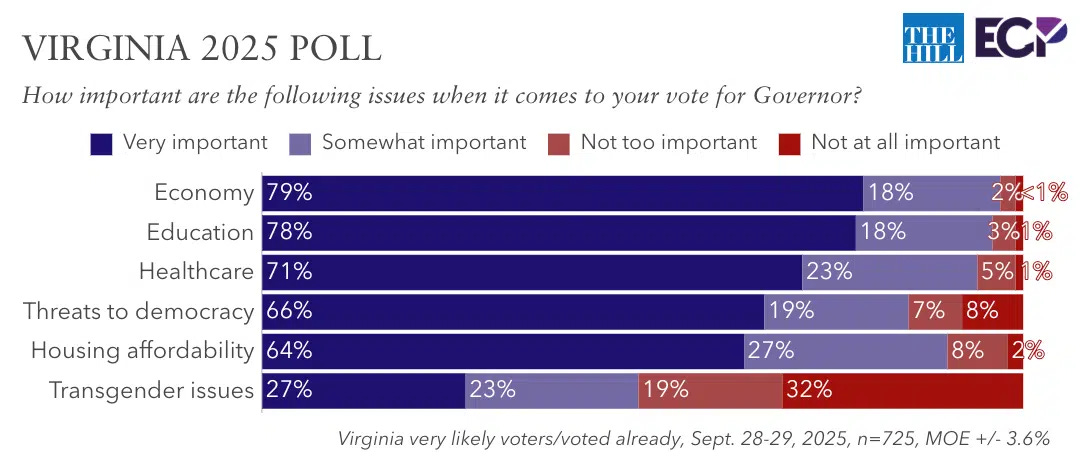Coincidentally, that same poll also finds that the economy is their top priority, coming in at 79%, showing how hammering an affordability message speaks to voters’ priorities.
