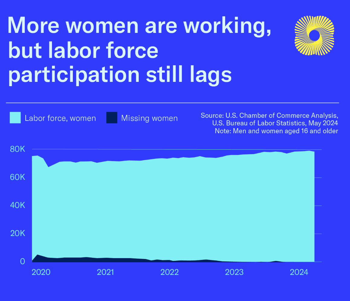 Even as of 2024, an estimated 560,000 parents (overwhelmingly women) who wanted to work were not actively job-hunting because they couldn’t find childcare. 16 percent of mothers of young children (under age 6) also stated that while they wanted to work, childcare was their main barrier. In short, yes – women, and especially mothers of little ones – are leaving the workforce at disproportionate rates.