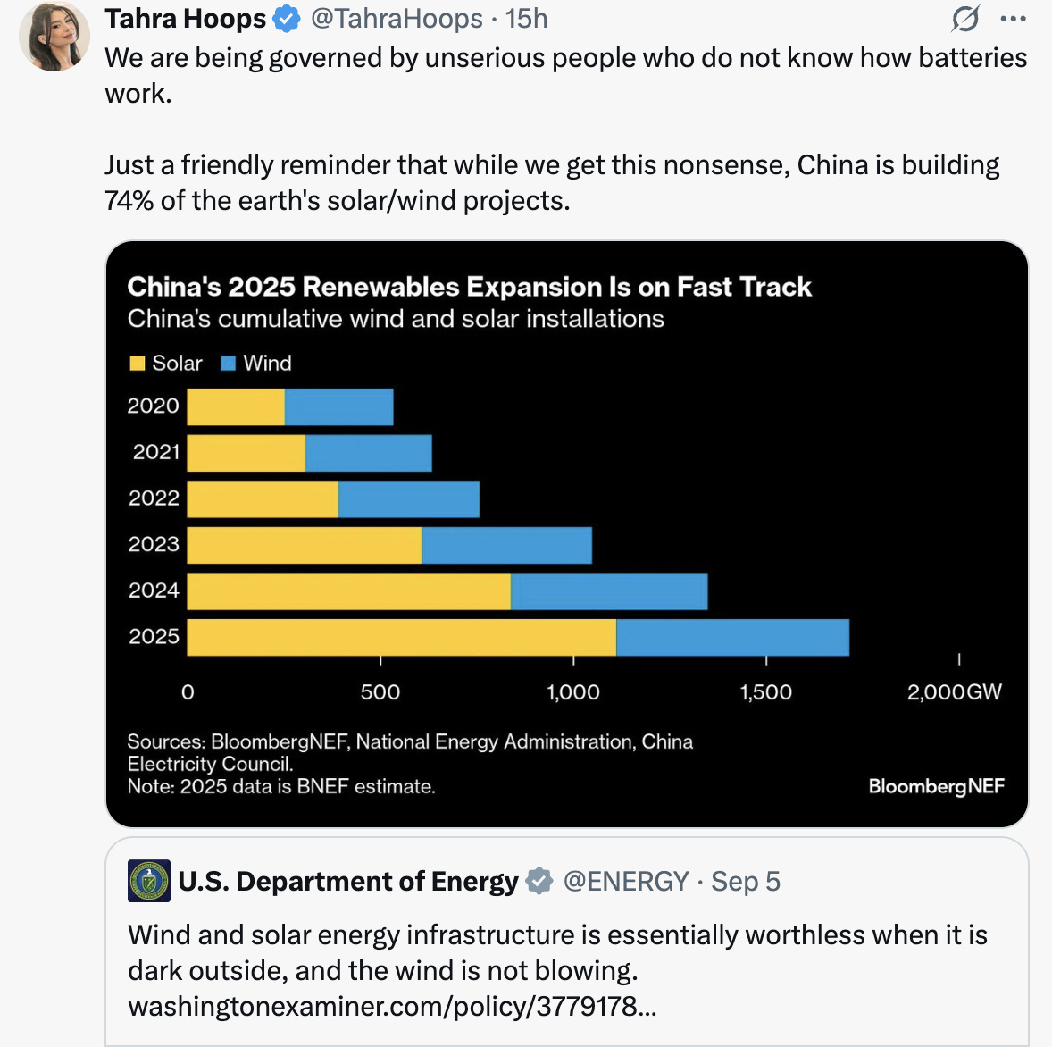 This framing is not only misleading, ignoring the role of storage, transmission, and complementary generation, but also corrosive. If the federal government itself casts doubt on renewables, it signals to investors that U.S. energy policy is unserious and unstable. Peters cited that some energy investors now view America as carrying developing-country levels of regulatory unpredictability, pointing to cases like the abrupt cancellation of already-approved wind projects. When policy is erratic and rhetoric undermines confidence, capital flows elsewhere.