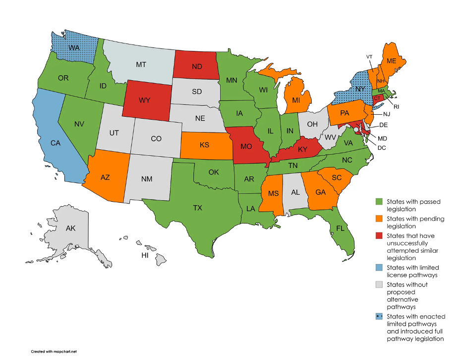 But then, in 2023, Tennessee became the first state to allow qualified, experienced doctors from abroad to practice in their state subject to passing the same standardized testing as U.S. medical school graduates and practicing under the supervision of a Tennessee-licensed physician for two years. Applicants must be certified by the Educational Commission for Foreign Medical Graduates, pass the same U.S. medical licensing exams as everyone else, have completed at least a three-year residency in their home country, and have recent clinical experience. After that supervision period, they can get a full license to practice independently.