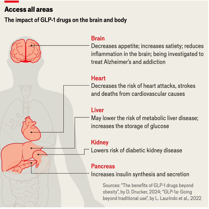 Obesity-related healthcare costs the U.S. about $173 billion annually, and that doesn’t include all those other medical problems that GLP-1s may be able to address like addiction. It also does include costs outside of direct medical expenses like lost productivity, disability payments, and early mortality. When you're already spending enormous sums treating heart attacks, strokes, and dialysis, spending a bit extra upfront to prevent these diseases isn’t just the humane thing to do, it’s smart long-term fiscal management.