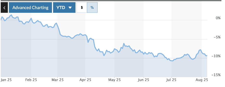 Meanwhile, Trump’s policies are weakening the dollar (it’s down roughly 10% since Trump took office), which reduces Americans’ purchasing power.