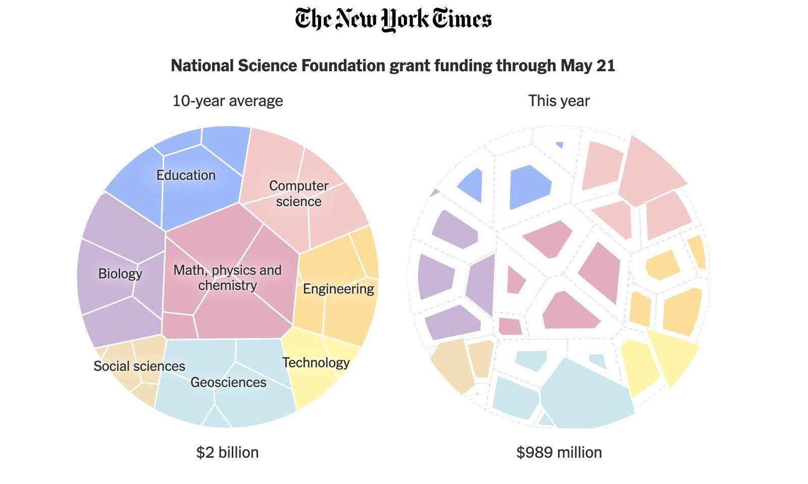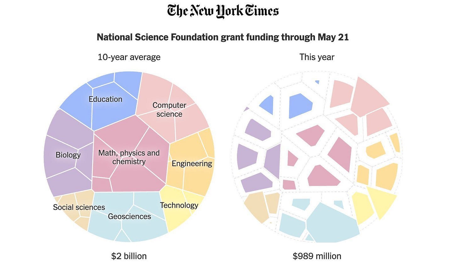 The scale of Trump's assault on scientific research and innovation is staggering. The dramatic cuts to the National Science Foundation (NSF), with funding collapsing from $2 billion in the 10-year average to just $989 million this year a devastating 50% reduction that eviscerates research across education, computer science, biology, math, physics, chemistry, engineering, social sciences, geosciences, and technology. It's a deliberate dismantling of America's innovation infrastructure.