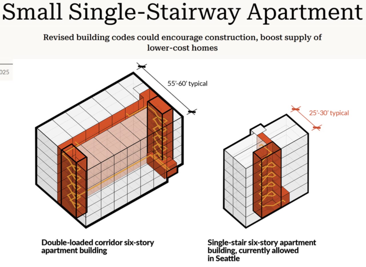 Our win of the week is Culver City, California approving single-stair reform, becoming the first California city to legalize mid-rise apartments built around a single staircase instead of the traditional two. This seemingly small change could unlock a wave of urban housing construction on smaller lots that are currently too cramped for conventional apartment buildings. Single-stair design allows for more units, bigger floor plans, better natural light with windows on multiple sides, and most importantly, makes it economically viable to build modest-scale apartments in transit-rich neighborhoods—exactly the kind of housing California desperately needs.