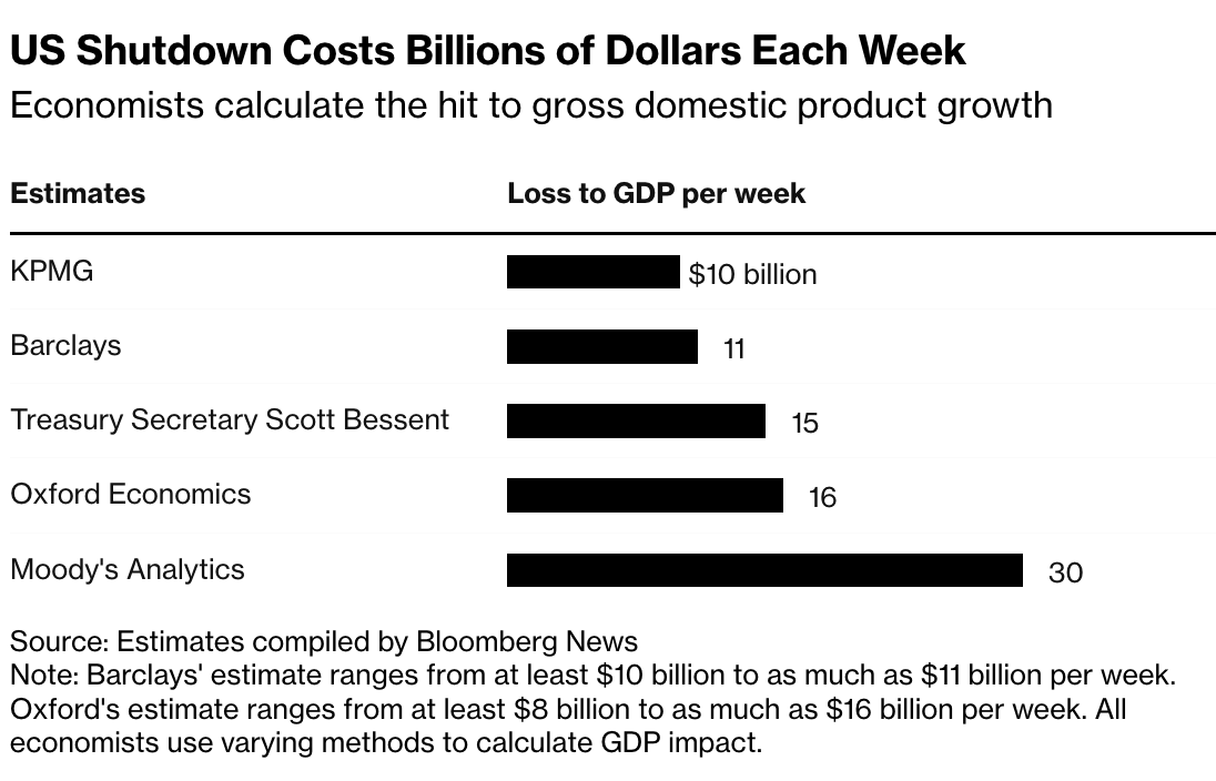 Why it matters: Even as an end appears in sight, the shutdown’s damage has already been immense, costing an estimated average of $15 billion per week and could have shaved 1.5 percentage points off U.S. GDP growth by mid November according to the CBO. Over 40 million Americans faced disrupted SNAP food aid, many receiving only half their benefits in November. Air travel ground to a halt as FAA staffing shortages forced mass flight cancellations, and critical programs like Head Start had their funds suspended.