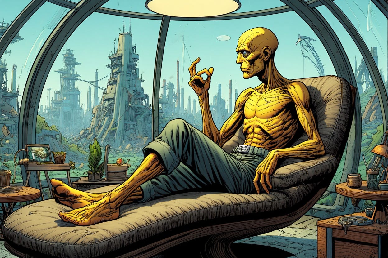 The Degrowther gazes upon humanity with the same cosmic disdain as Thanos, seeing billions of people not as individuals with hopes and dreams, but as a plague consuming Mother Earth's precious resources. With chilling indifference to human suffering, he snaps his fingers to eliminate economic growth, development projects, and material progress believing that returning humanity to pre-industrial poverty is a small price to pay for planetary "balance." His twisted philosophy states: "I am... inevitable. We humans are parasites. Your smartphones, your cars, your comfortable lives —all of it must be sacrificed so that the Earth may thrive."