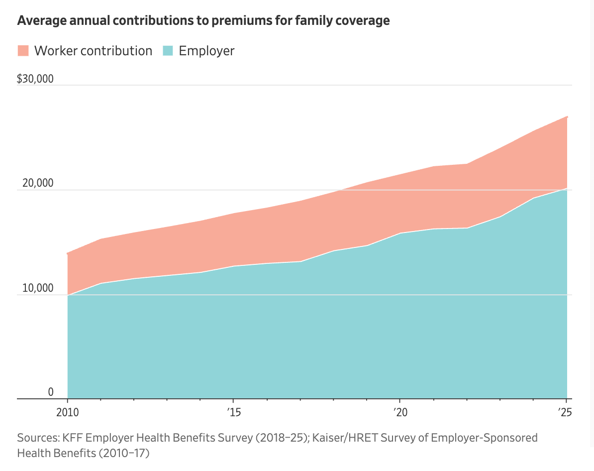 All of this hits employers as they pay for most of a worker’s health insurance premiums.