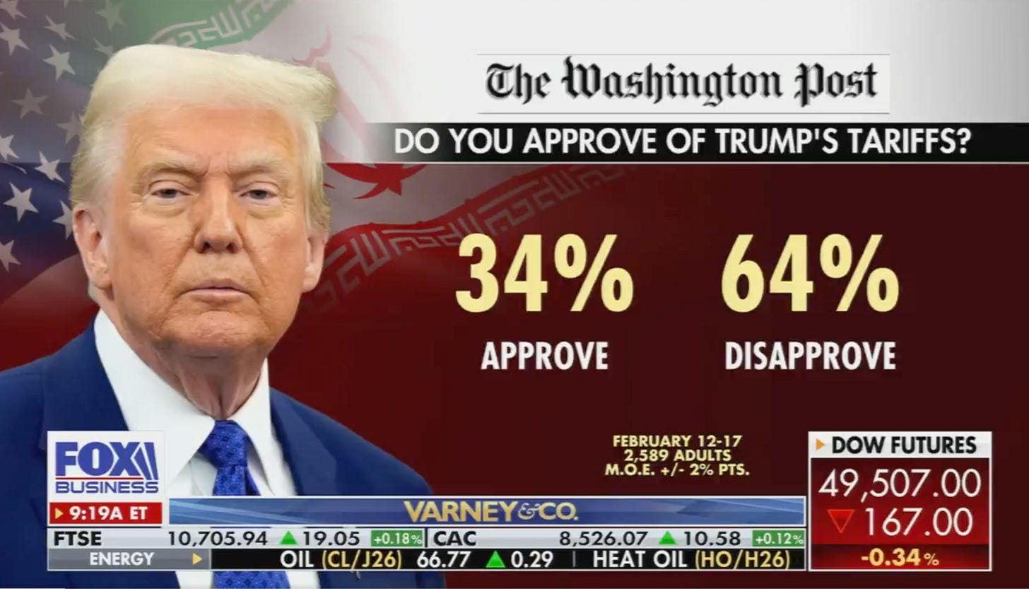Senate Democratic leaders praised the ruling as a rebuke of executive overreach and emphasized cost impacts for families and small businesses. Governors have gone further: Gov. Gavin Newsom and Gov. JB Pritzker publicly demanded tariff refunds, with Pritzker sending Trump a literal “invoice” framing the tariffs as unlawful costs imposed on families. Even across the aisle, you have Fox Business highlighting that 64% of Americans disapprove of Trump’s tariffs!