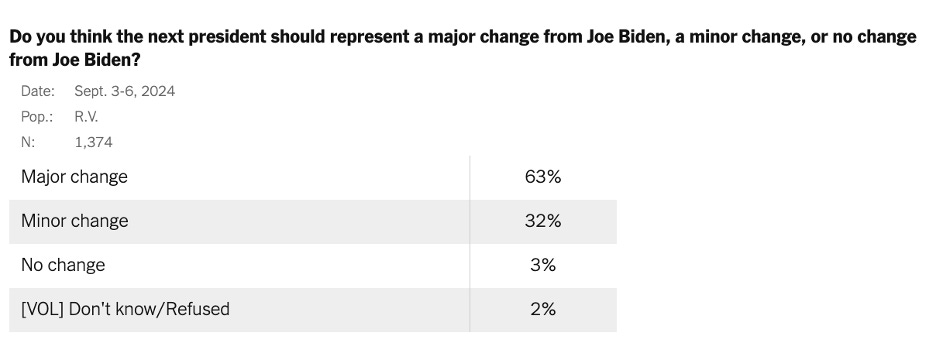 By a two-to-one margin, voters wanted the next President to be a major change from Biden.