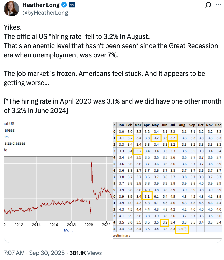 Strangling the Productivity Engine: When workers don’t switch jobs, they often miss out on raises (the biggest pay bumps often come from changing employers). Low churn means slower wage growth for individuals and less pressure on employers to innovate or boost productivity. New ideas circulate more slowly within and between firms. Over time, this can contribute to the kind of economic stagnation that is hard to reverse. As one analysis put it, the labor market’s “flows” – hires, quits, even layoffs – show “how alive the job market really is”. Right now, those vital signs are weak.